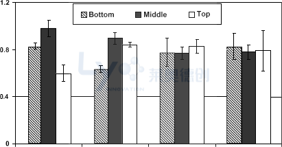 目前針對瓶內(nèi)不均勻性問題的關(guān)注仍顯不足,相關(guān)文獻(xiàn)報道也十分有限。對于高濃度、大灌裝深度的制劑冷凍干燥而言,這一問題(特別是垂直均勻性)顯得尤為關(guān)鍵。三段重量分析法結(jié)果(見圖7)證實:單步冷凍會在干燥產(chǎn)品中形成高度垂直不均勻性,其中部出現(xiàn)高濃度核心,而添加碘化銀可部分改善此現(xiàn)象。通過采用兩步冷凍法(包含過冷保持階段)或添加叔丁醇,可獲得最佳的瓶內(nèi)均勻性。