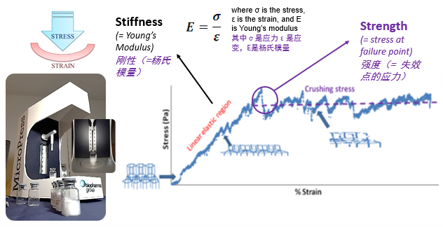 由Biopharma研發(fā)的Micropress分析設(shè)備在容器適配,微小力控制,數(shù)據(jù)采集方便專門針對凍干樣品的特性進(jìn)行了優(yōu)化,是目前市面上為數(shù)不多的凍干機(jī)械性能分析設(shè)備。通過對樣品進(jìn)行簡單的操作,可快速獲取樣品的楊氏模量和強(qiáng)度信息。