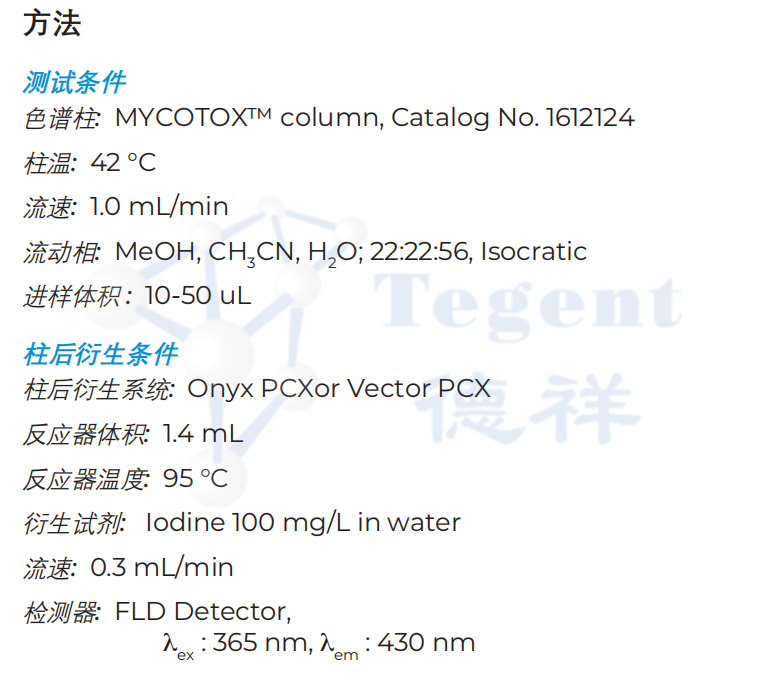許多國(guó)際和國(guó)家的官方標(biāo)準(zhǔn)方法(如AOAC、ISO、GB 5009.22等)以及權(quán)威機(jī)構(gòu)(如FDA、歐盟)推薦使用HPLC結(jié)合柱后衍生法(作為黃曲霉毒素定量的確認(rèn)和仲裁方法。本文結(jié)合上述標(biāo)準(zhǔn)由Pickering Laboratories實(shí)驗(yàn)室開(kāi)發(fā),為可復(fù)現(xiàn)的實(shí)驗(yàn)結(jié)果。